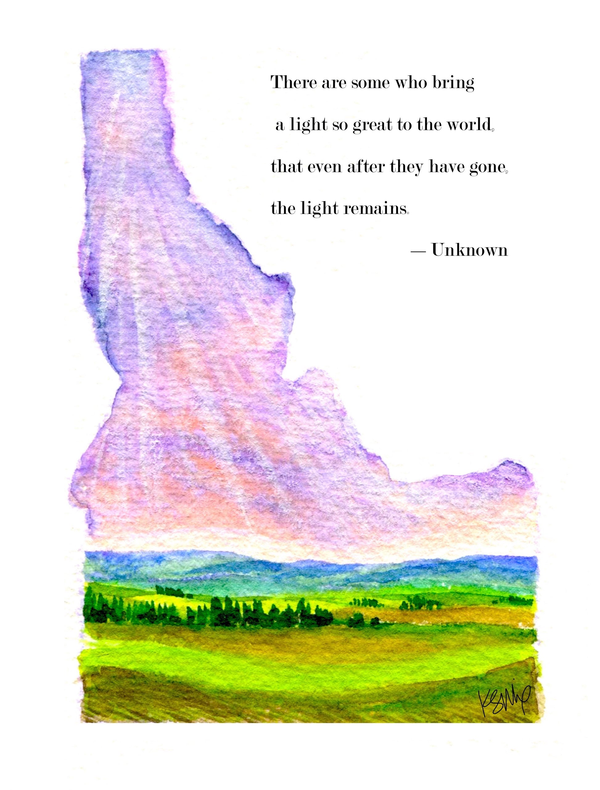Beautiful cards for any occasion! Created for weddings, birthdays, anniversaries, babies, sympathy or get well moments in the lives of your loved ones! Give a little piece of Idaho and your heart with these cards. Hand painted in watercolor and then digitally reproduced on quality cardstock, these blank-inside cards give you plenty of space to pen your thoughts and sign your John Hancock.
